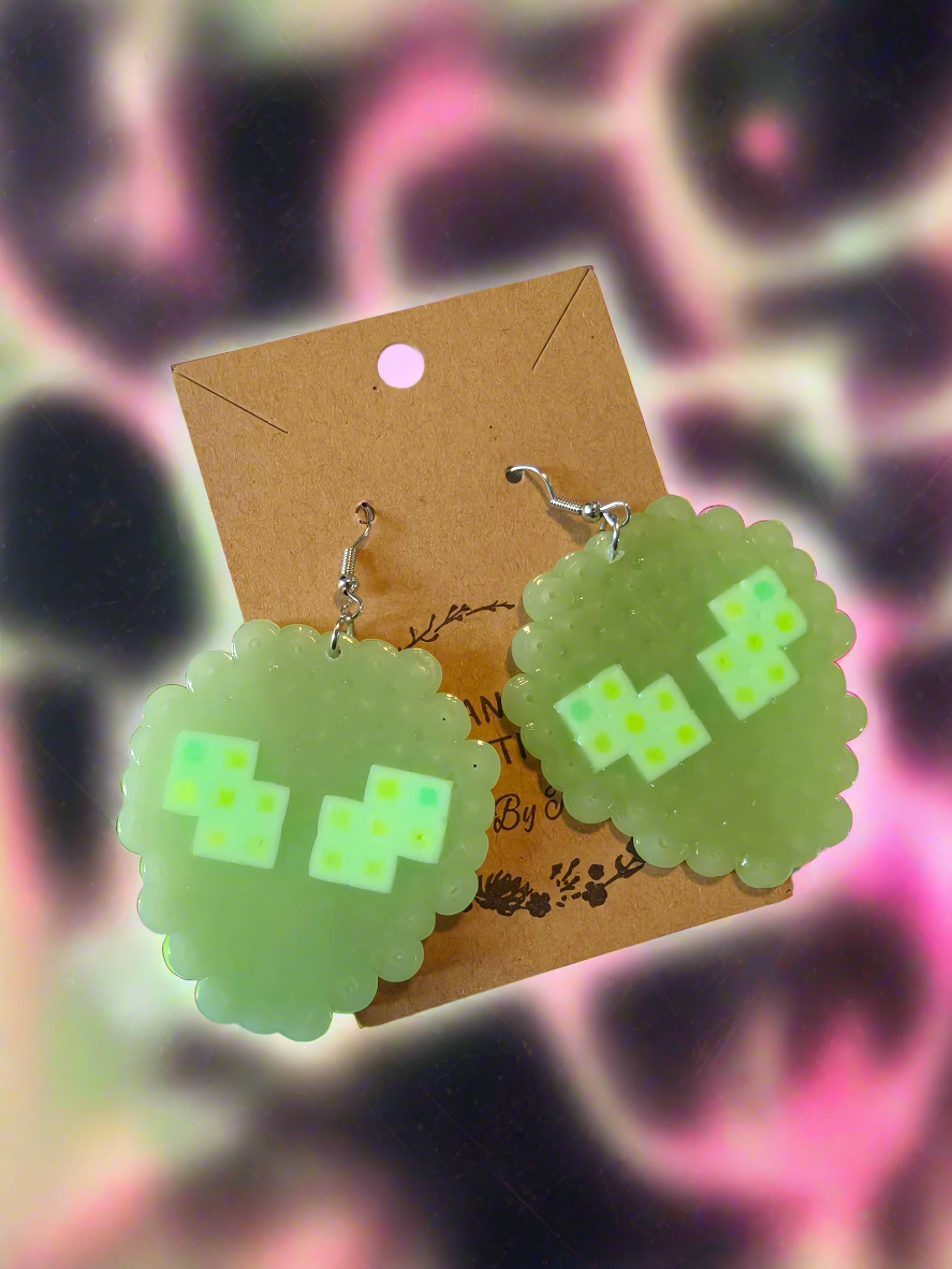 Illuminate your style with these quirky Alien Head melt bead earrings! With a variety of colors to choose from, including glow in the dark options, these earrings are sure to make a statement. Embrace your playful side and add a touch of humor to your outfit.